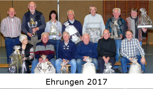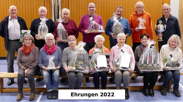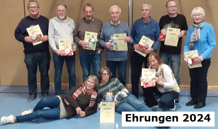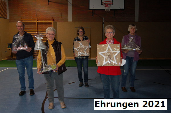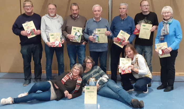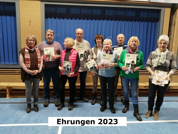 Im Mehrzweckraum der Turnhalle nahmen nach einer 7 km langen Wanderung 77 Teilnehmer ihre Plätze an weihnachtlich geschmückten Tischen ein und genossen Kaffee und Kuchen. Auf dem Programm stand die Verabschiedung des Wanderwartes Manfred Röper und die Wahl des Nachfolgers. Zuvor fanden die Ehrungen für Wander/Innen bezüglich deren gewanderten Kilometern statt.Manfred Röper wurde für 2000 km, die er im Laufe der Jahre gewandert ist, besonders ausgezeichnet. Alle Geehrten bekamen Geschenke überreicht.