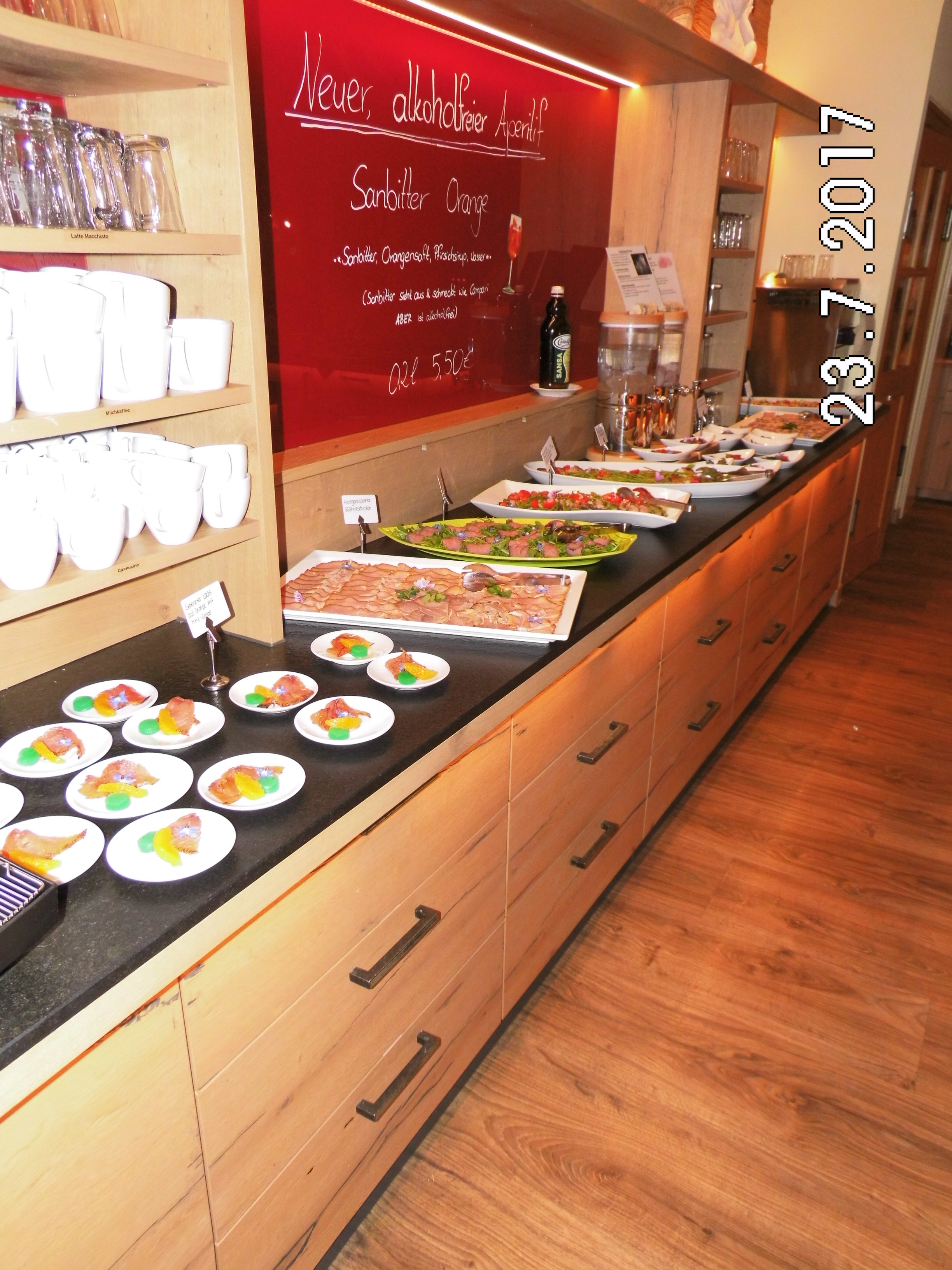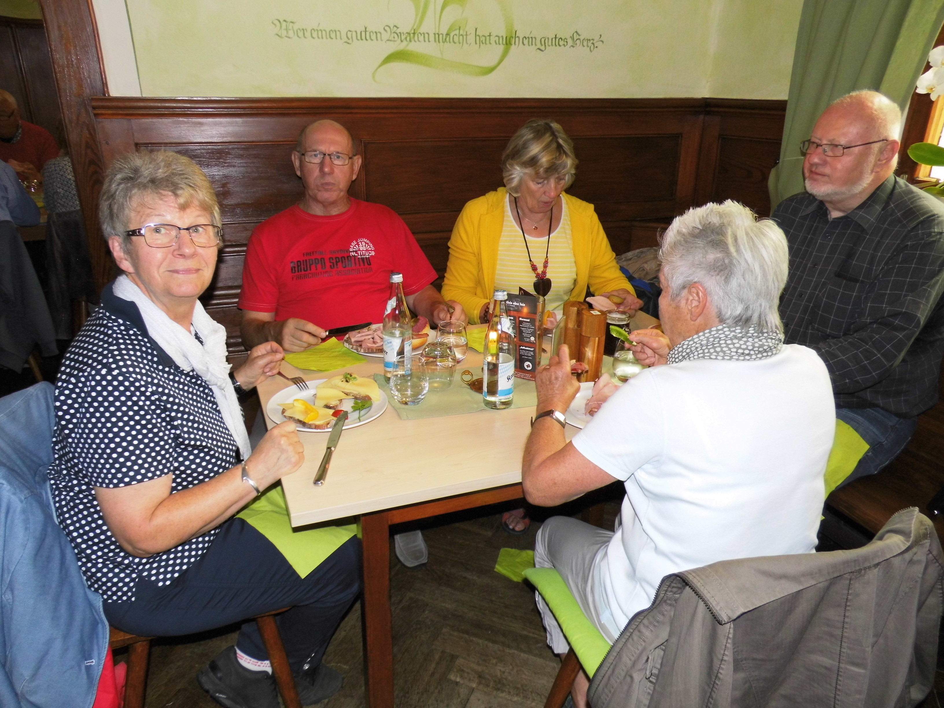 Die Wärme machte uns allen sehr zu schaffen. So waren wir froh, dass wir nach dem Aufenthalt in Greetsiel in Abbehausen ankamen. Dort haben wir im Buntjenter Brauhaus ein leckeres Buffet mit Vorsuppe und Dessert genossen.