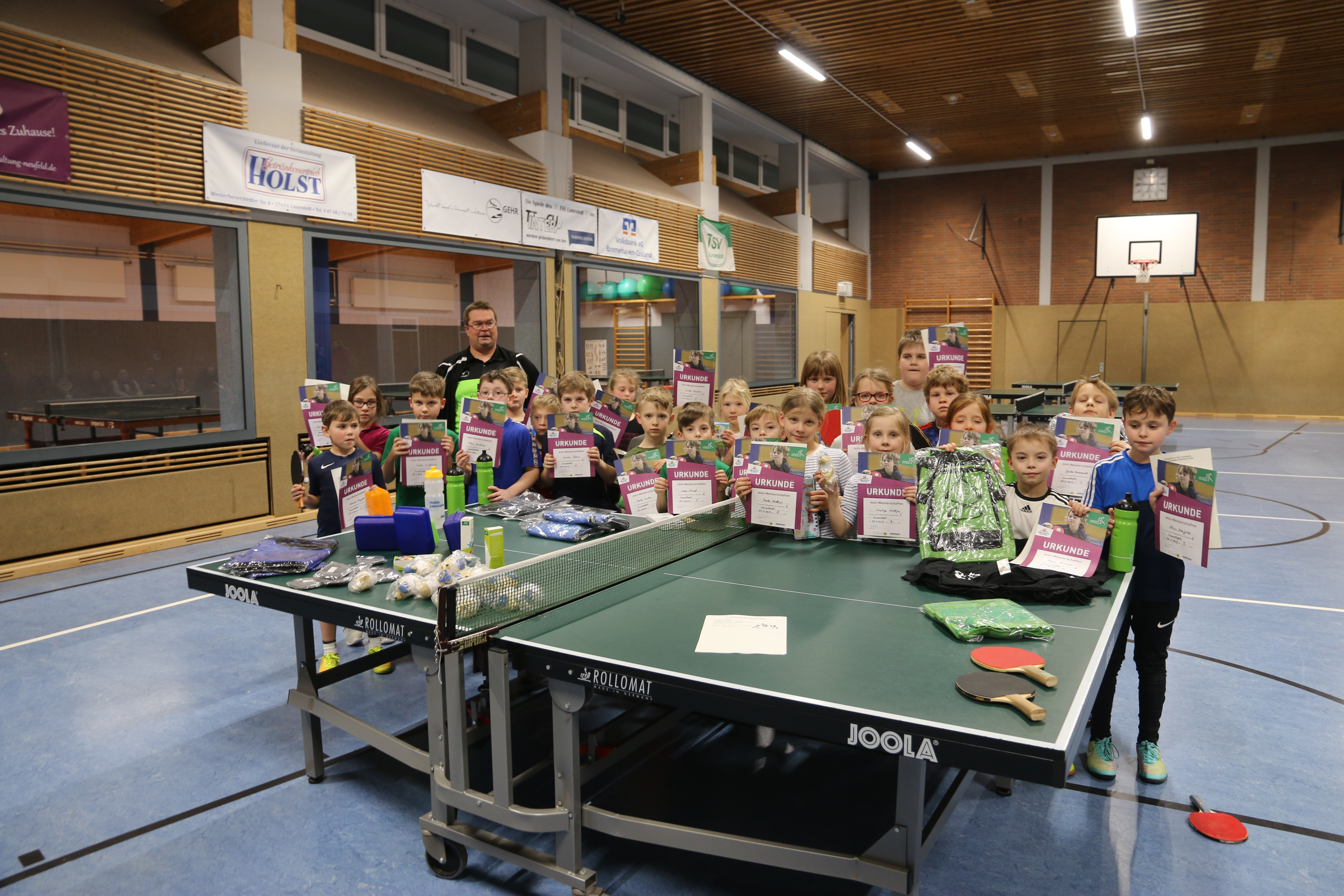 Die Sieger des Ortsentscheids der Tischtennis-mini-Meisterschaften heißen Rebecca Bent (Mädchen, 8-Jährige und jünger), Tristan Windhorst (Jungen, 8-Jährige und jünger) und Gustav Petrov (Jungen, 9-/10-Jährige).